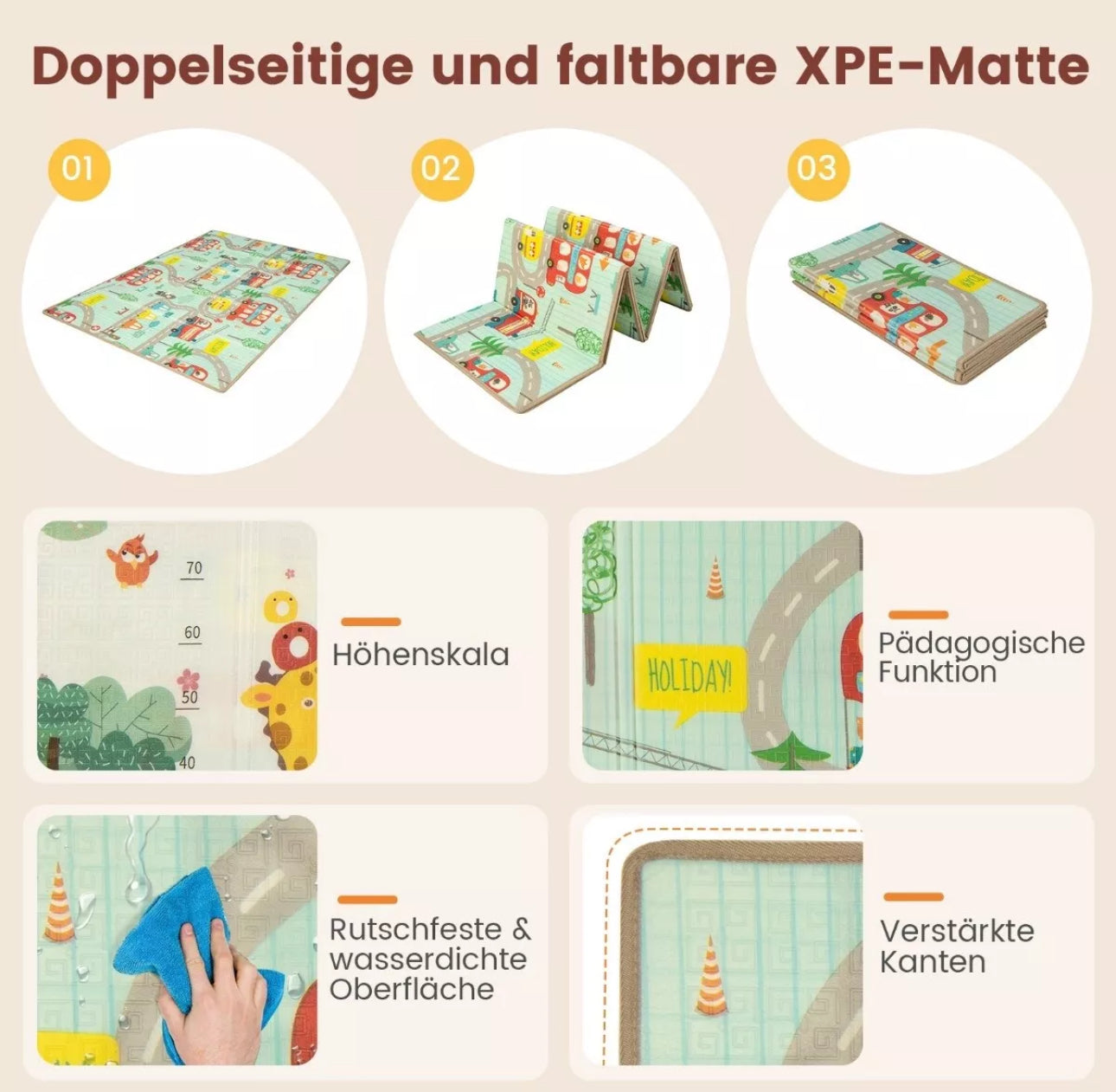Tappetino XPE bifacciale e pieghevole per un'ammortizzazione morbida